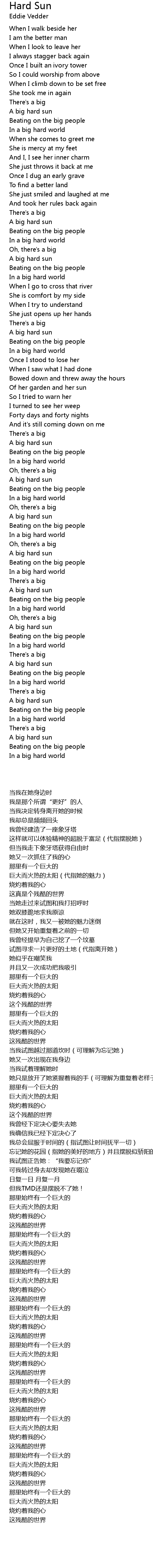 Hard Sun Lyrics