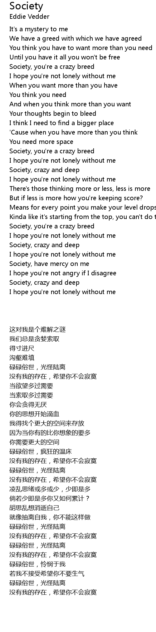 Society, crazy and deep |