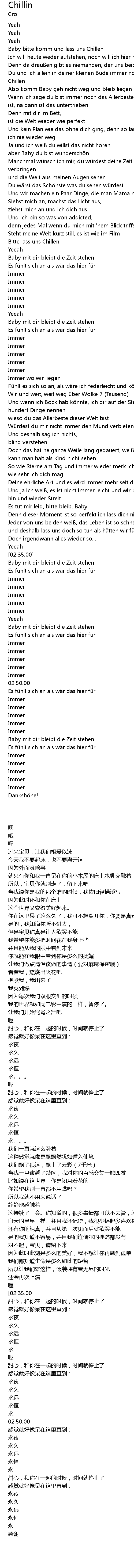 | [00:30.00] | Baby bitte komm und lass uns Chillen |
