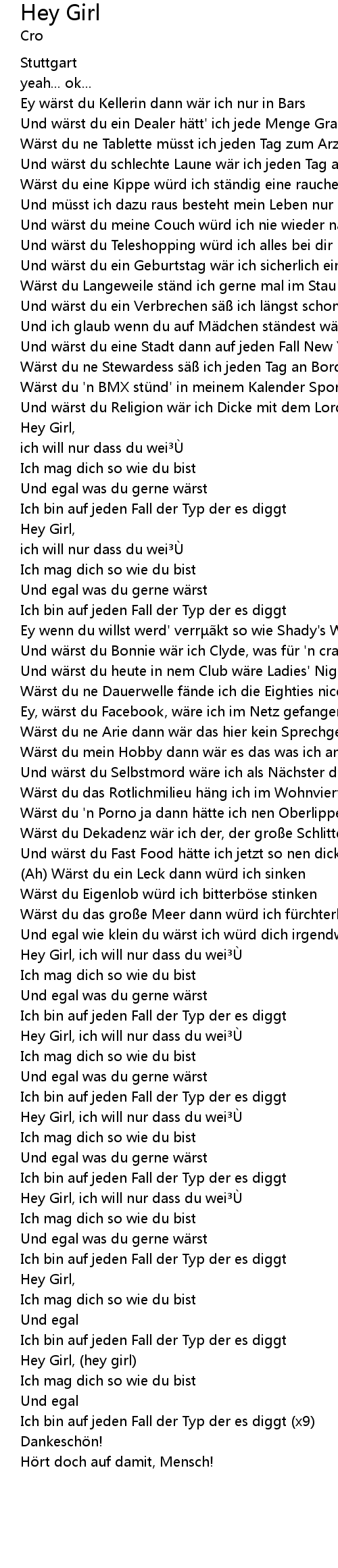 | [02:43.43] | Hey Girl, ich will nur dass du wei³Ù |