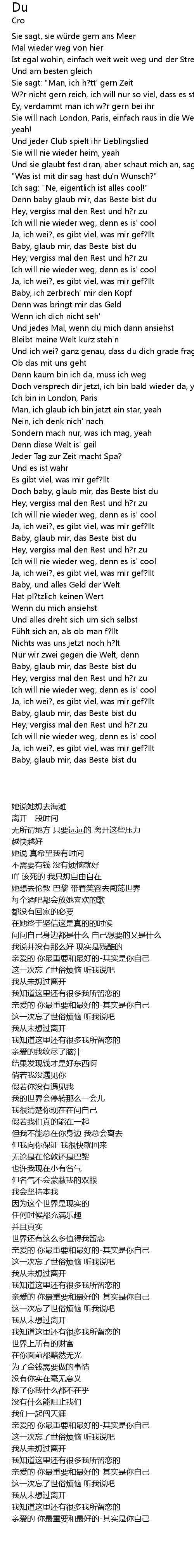 | [02:17.72] | Baby, glaub mir, das Beste bist du |