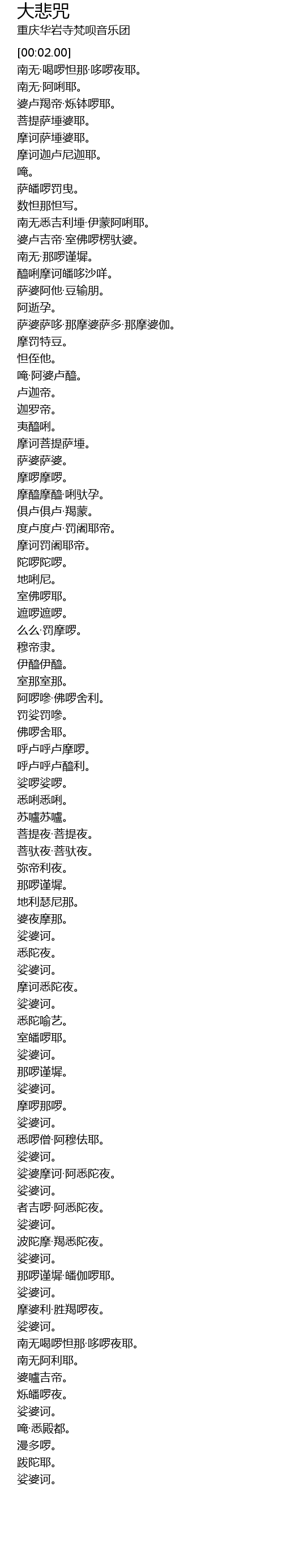 | [00:48.83] | 醯唎摩诃皤哆沙咩。 |