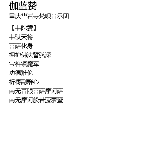| Song | 伽蓝赞 |