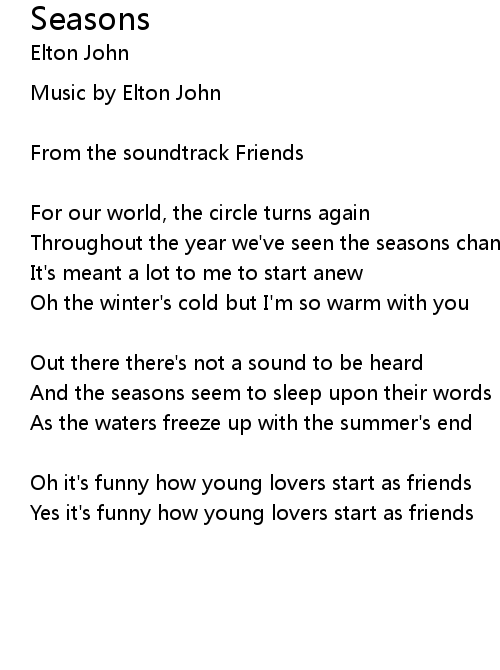 | Oh it's funny how young lovers start as friends | |