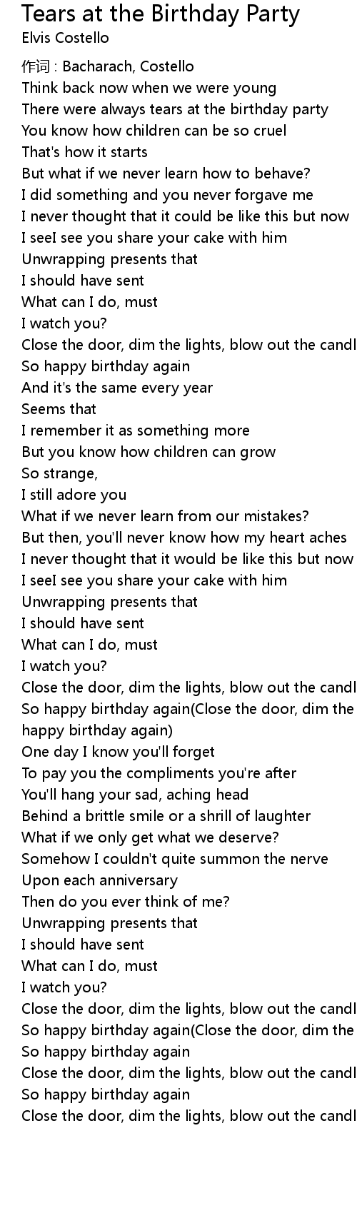 | So happy birthday again Close the door, dim the lights, blow out the candles So happy birthday again | |