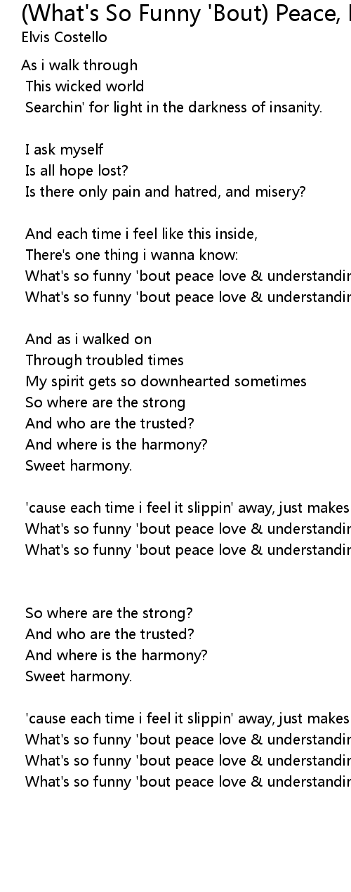 What's so funny 'bout peace love & understanding? |