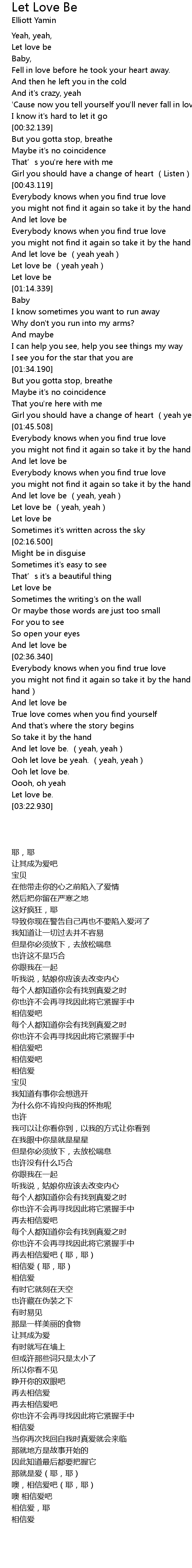 | [03:00.300] | Ooh let love be yeah. (yeah, yeah) |