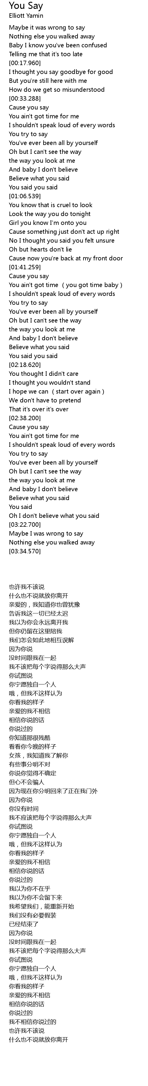| [02:46.900] | I shouldn' t speak loud of every words |