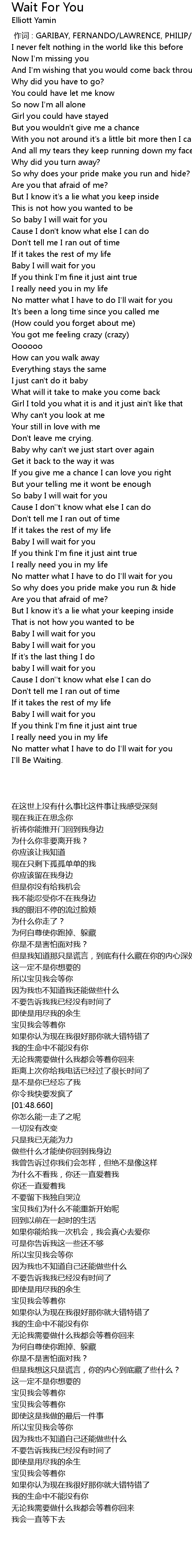 | [02:28.909] | So baby I will wait for you |