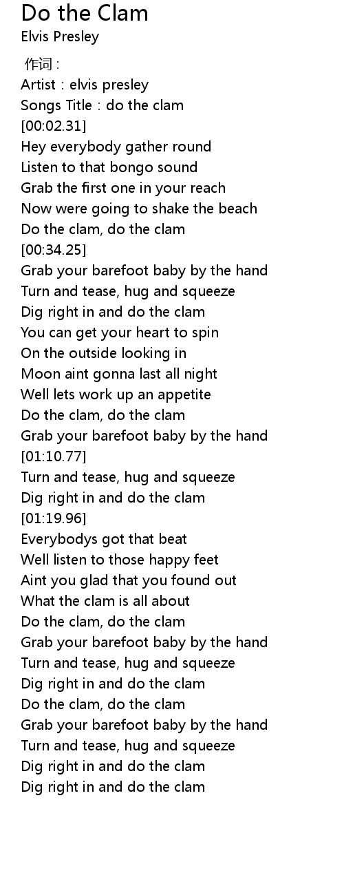 | [00:00.94] | Songs Title:do the clam |