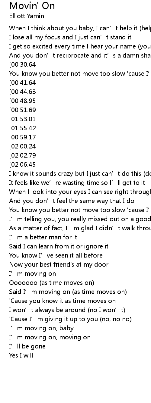 | [00:35.52] | You know you better not move too slow 'cause I’m moving on |