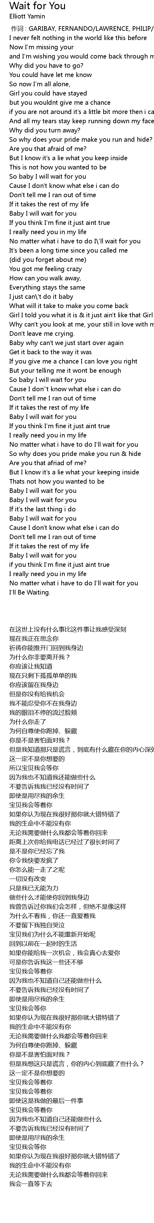 | [03:19.890] | Baby I will wait for you |