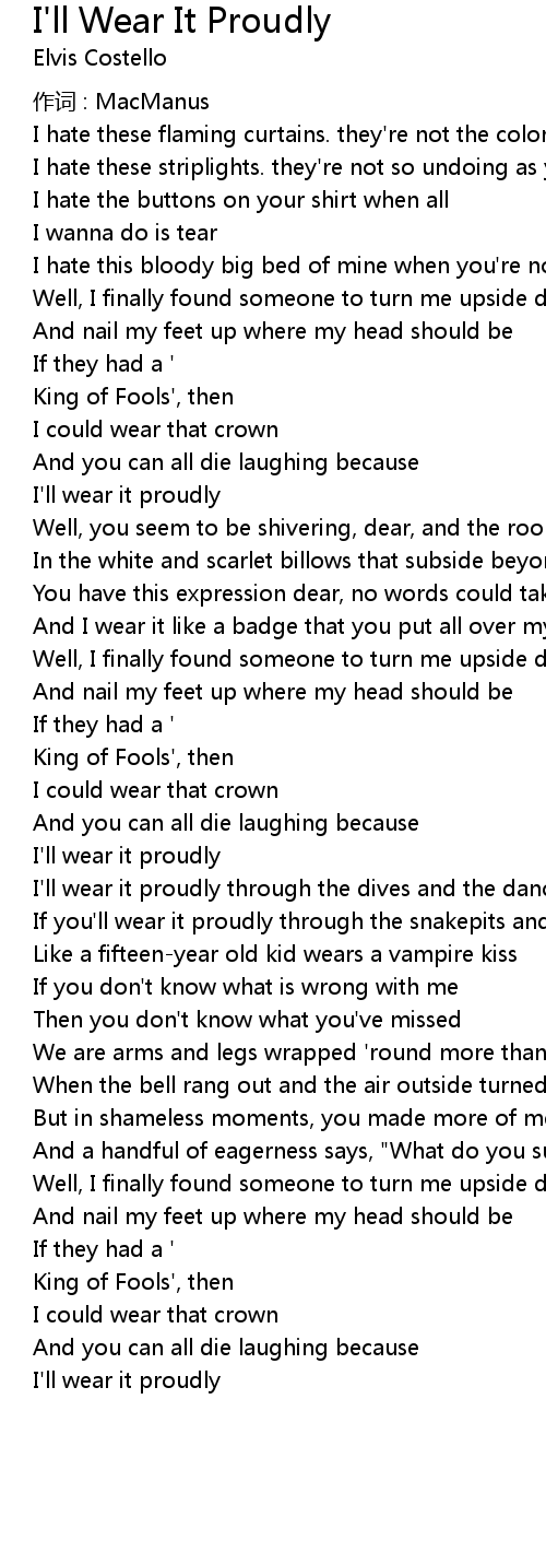 | I' ll wear it proudly through the dives and the dancehalls | |