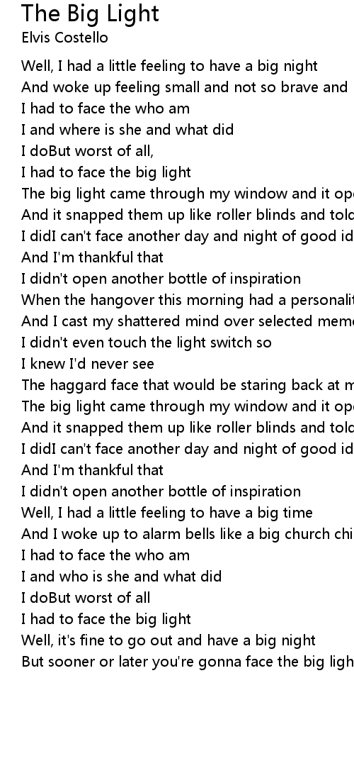 But sooner or later you're gonna face the big light |
