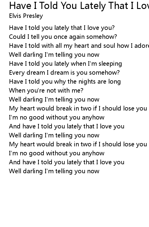 | And have I told you lately that I love you | |