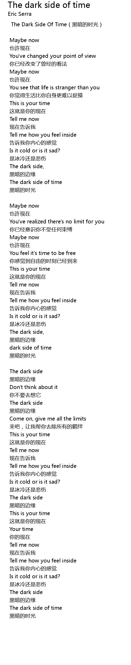 | The Dark Side Of Time hēi àn de shí guāng | |