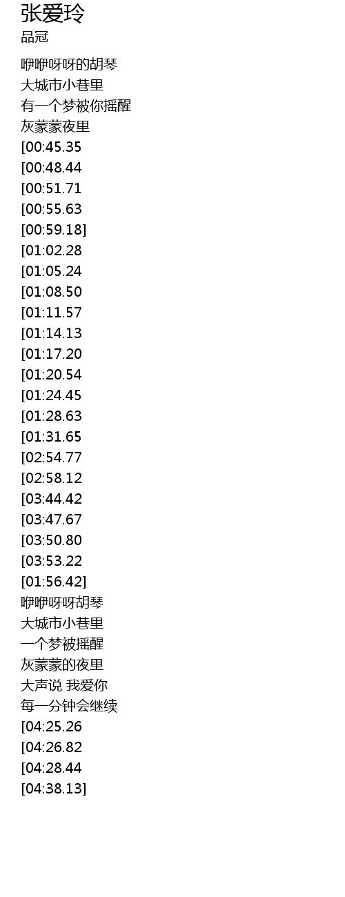 | [03:38.18][02:54.77][01:34.83] | 这夜色有点张爱玲 |