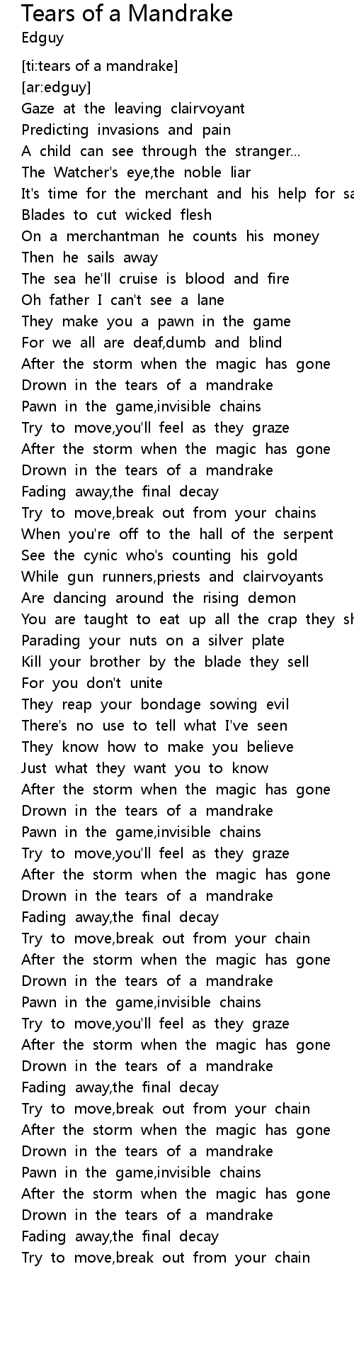 Tears of a Mandrake Lyrics