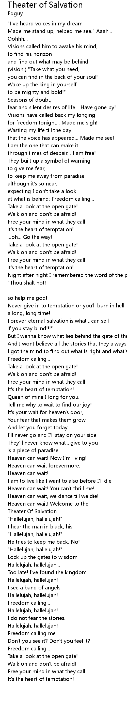 Theater of Salvation Lyrics