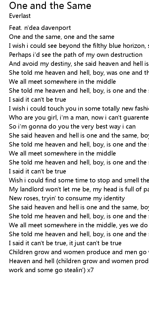 And avoid my destiny, she said heaven and hell is one and the same boy |
