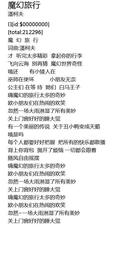 | [02:53.492] | 嗨魔幻的旅行太多的奇妙 |