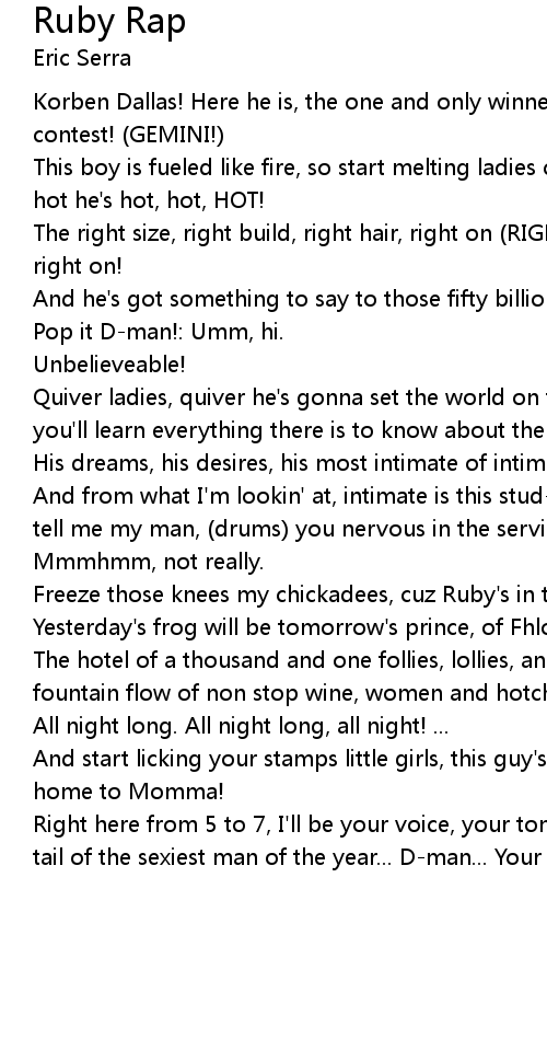 Freeze those knees my chickadees, cuz Ruby's in the place and he's on the case.