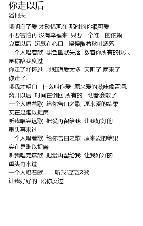 | [03:19.40] | 听我唱完这歌 把爱再留给我 让我好好的 |