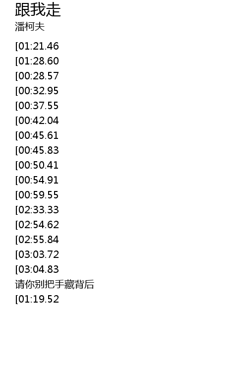 | [03:23.25][03:04.83][02:46.82][02:28.44][01:15.50] | 跟我走 请你别把手藏背后 |