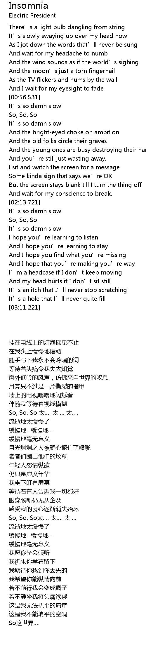 | Song | Insomnia |