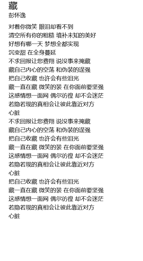 | [01:06.63] | 不求回报让您费翔 说没事来掩藏 |