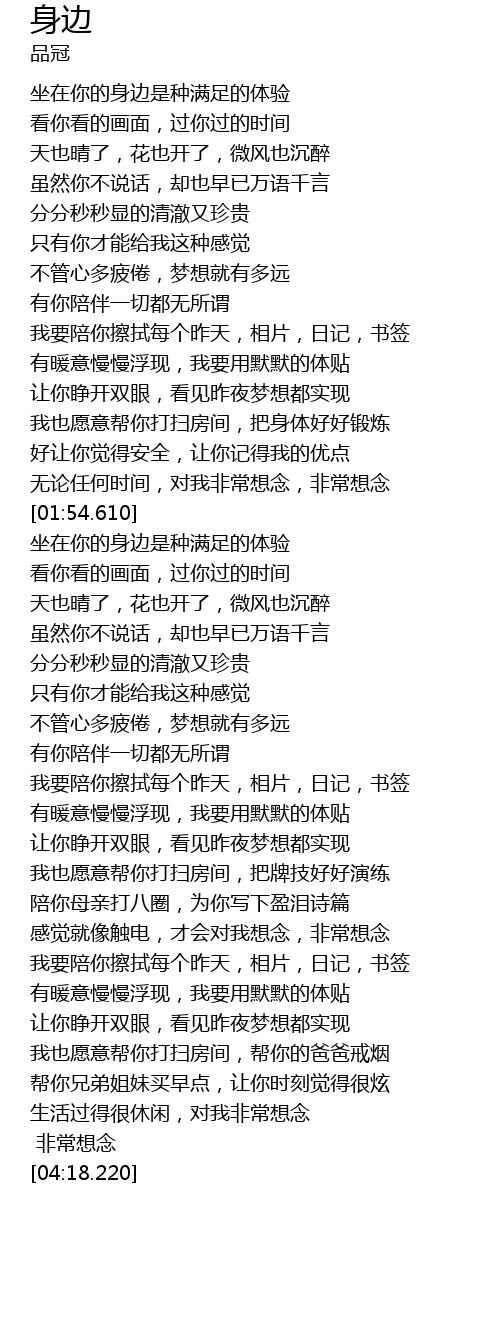 | [00:26.700] | 坐在你的身边是种满足的体验 |