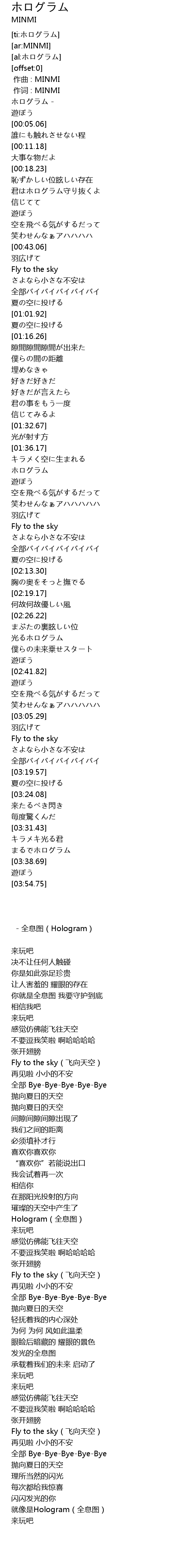 | [00:23.38] | 君はホログラム守り抜くよ |