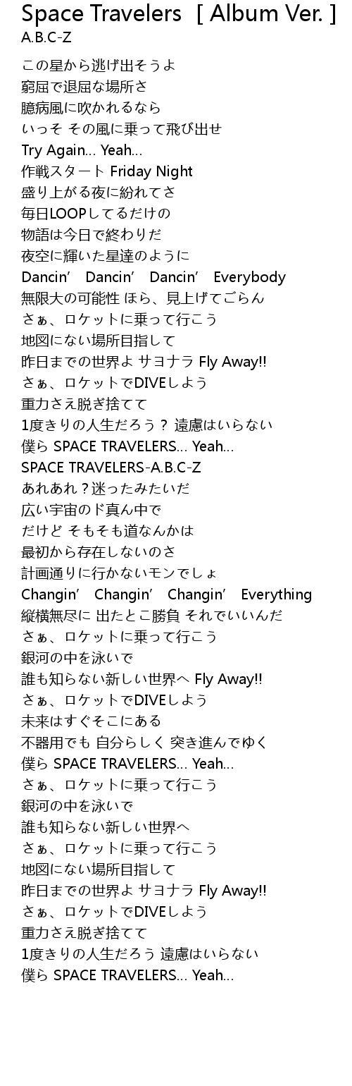 | [01:42.82] | SPACE TRAVELERS-A.B.C-Z |