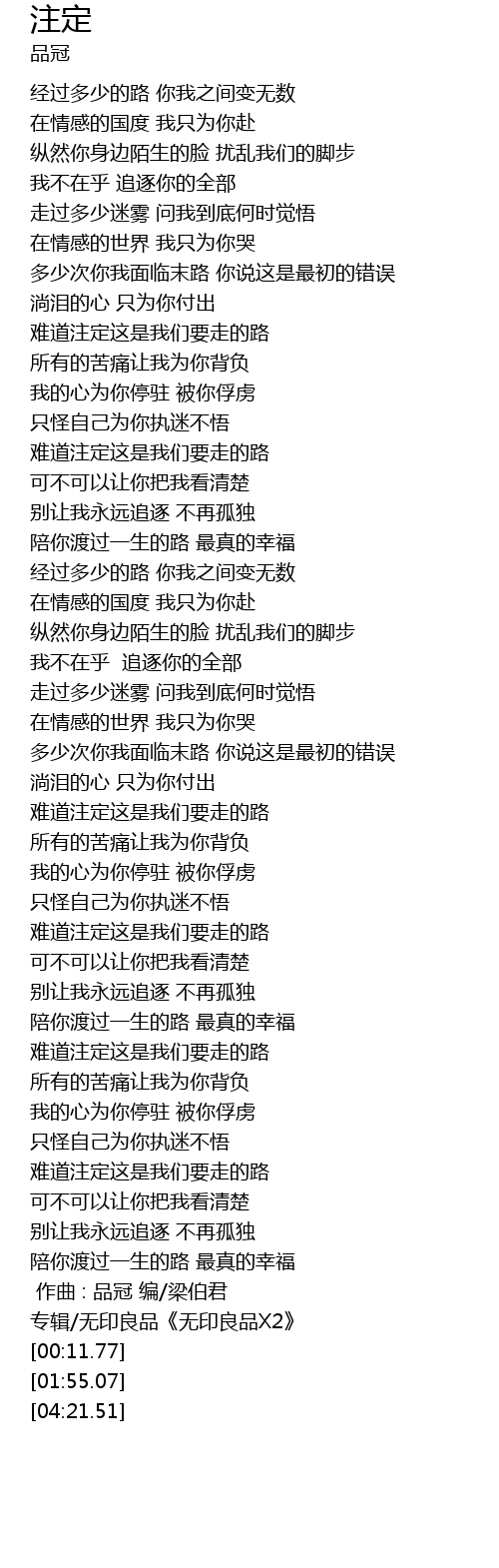| [00:00.00] | 作曲 : 品冠 编/梁伯君 |