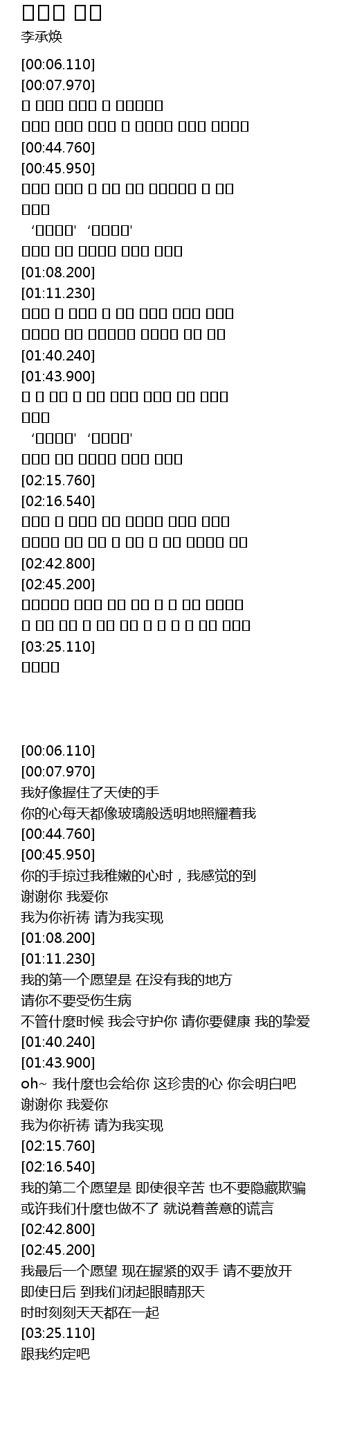 | [00:17.440] | 나 어쩌면 천사와 손 잡았나봐요 |