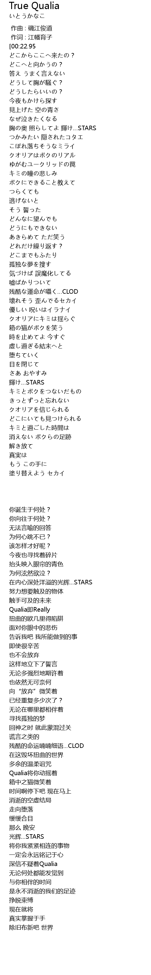 | [02:05.16] | クオリアにキミは揺らぐ |