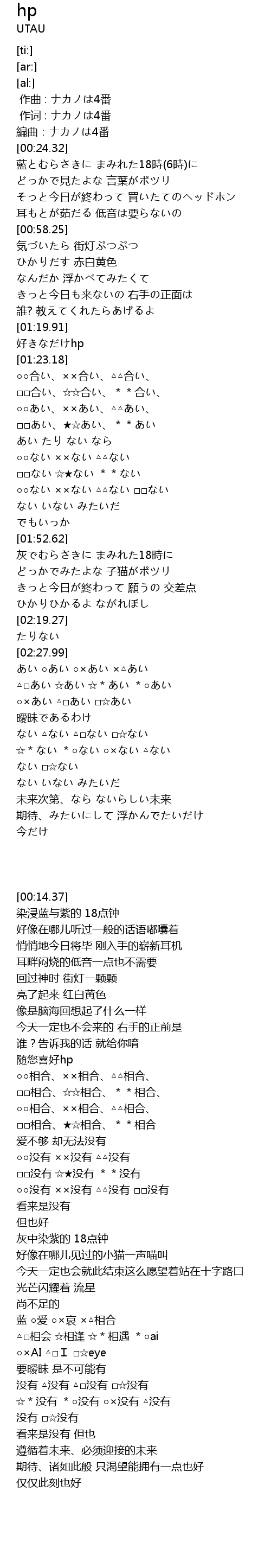 | [02:38.34] | ☆*ない *○ない ○×ない △ない |
