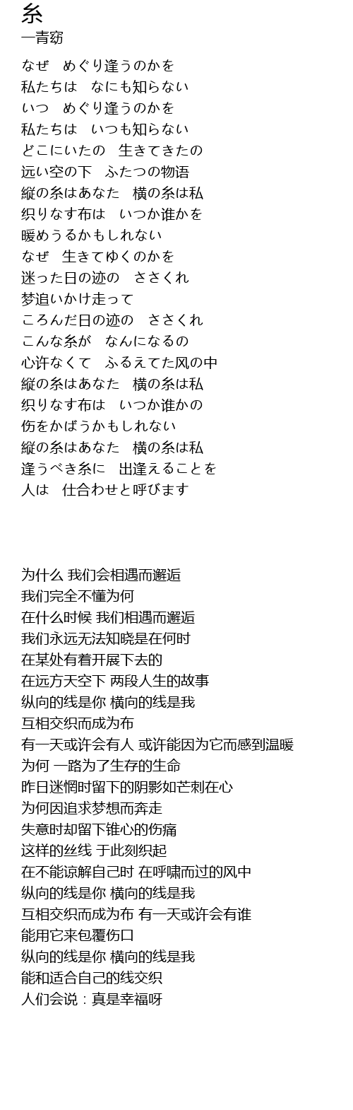 縦の糸はあなた 横の糸は私 |