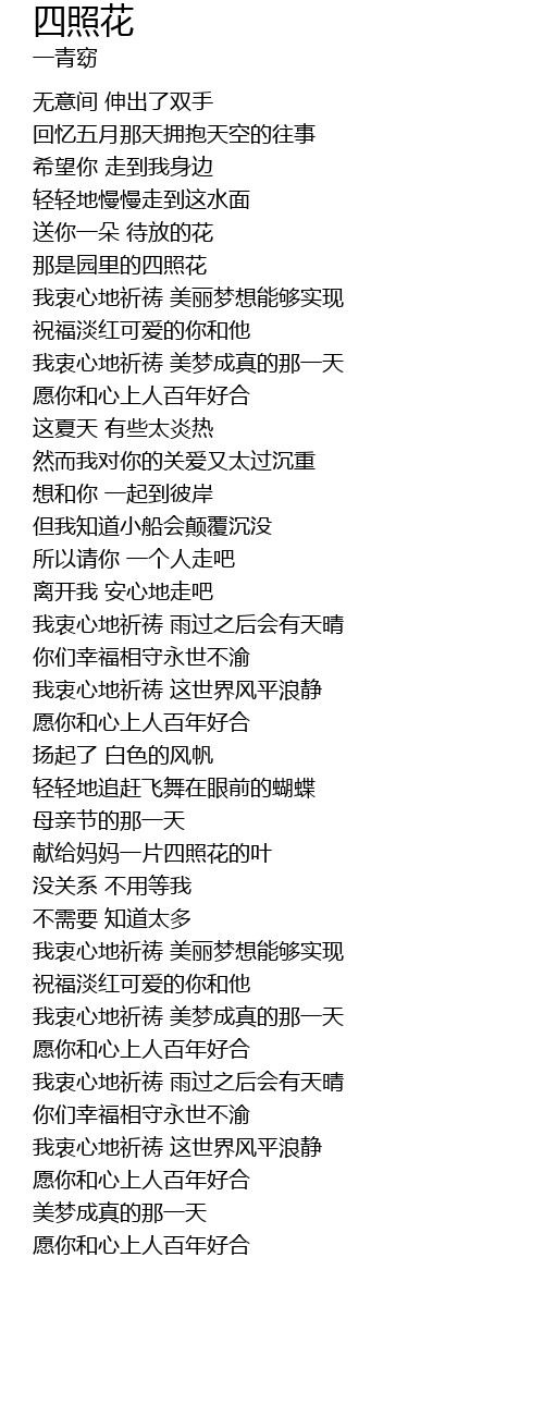 | [03:32.89] | xiàn gěi mā mā yī piàn sì zhào huā de yè |