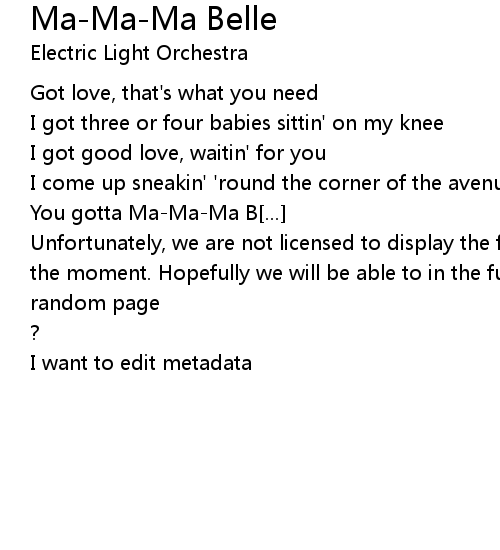 | Unfortunately, we are not licensed to display the full lyrics for this song at the moment. Hopefully we will be able to in the future. Until then, how about a | |