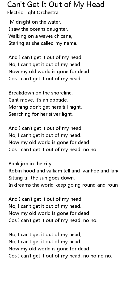 Cos I can't get it out of my head, no no. |