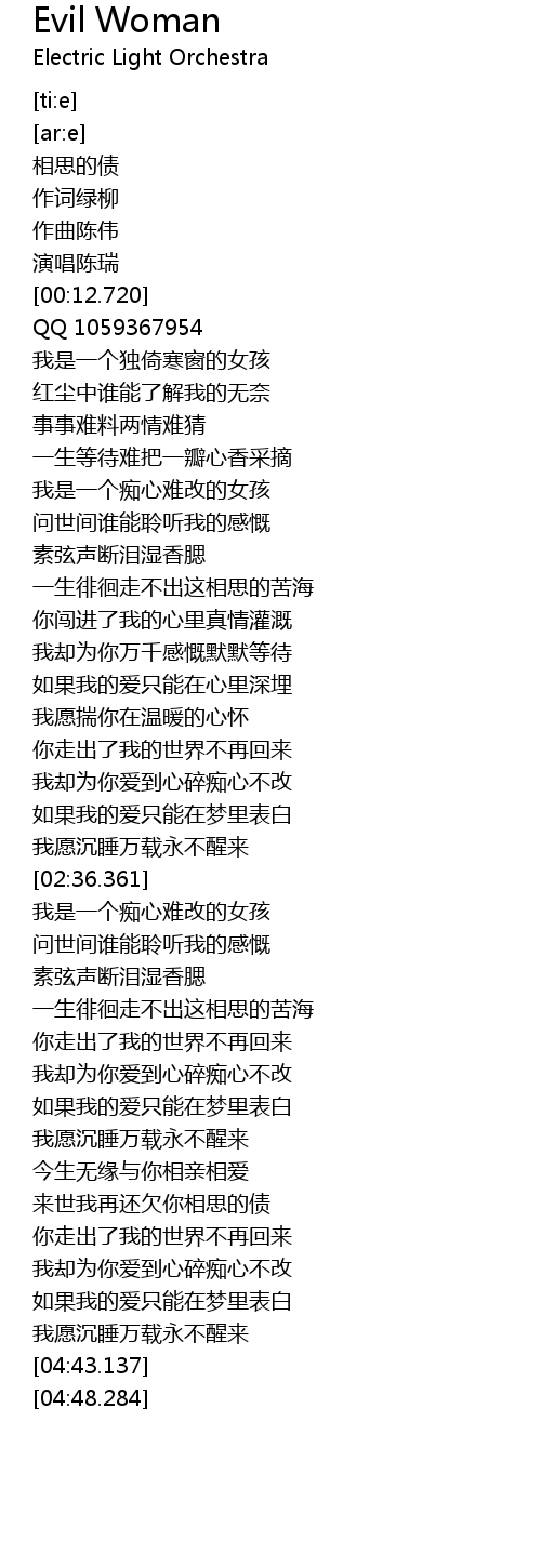 | [00:02.504] | 相思的债 |