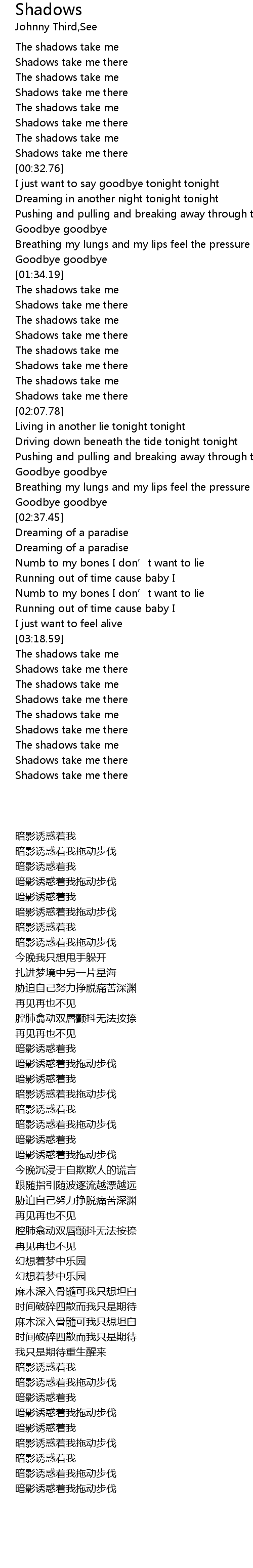 | [03:01.05] | Numb to my bones I don’t want to lie |