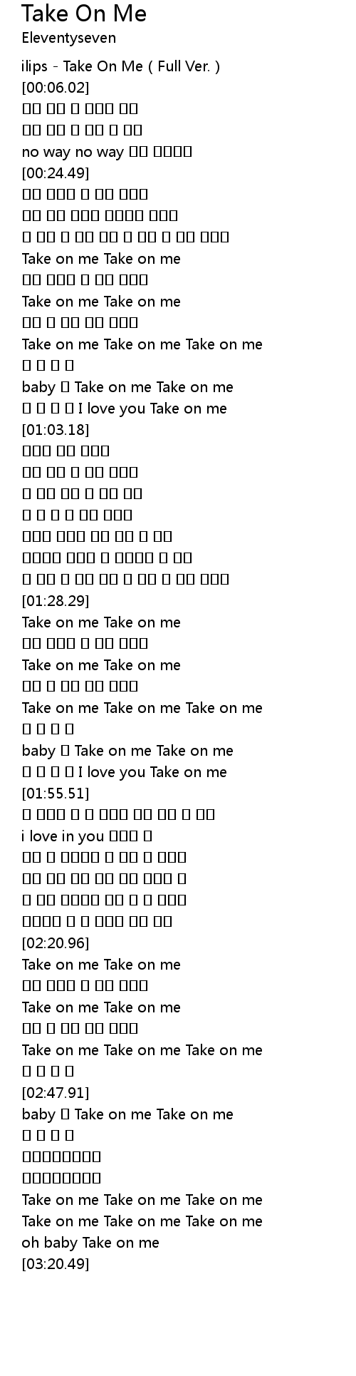 | [00:00.50] | ilips - Take On Me(Full Ver.) |