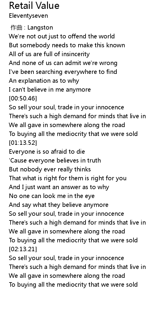 | [00:50.96] | So sell your soul, trade in your innocence |