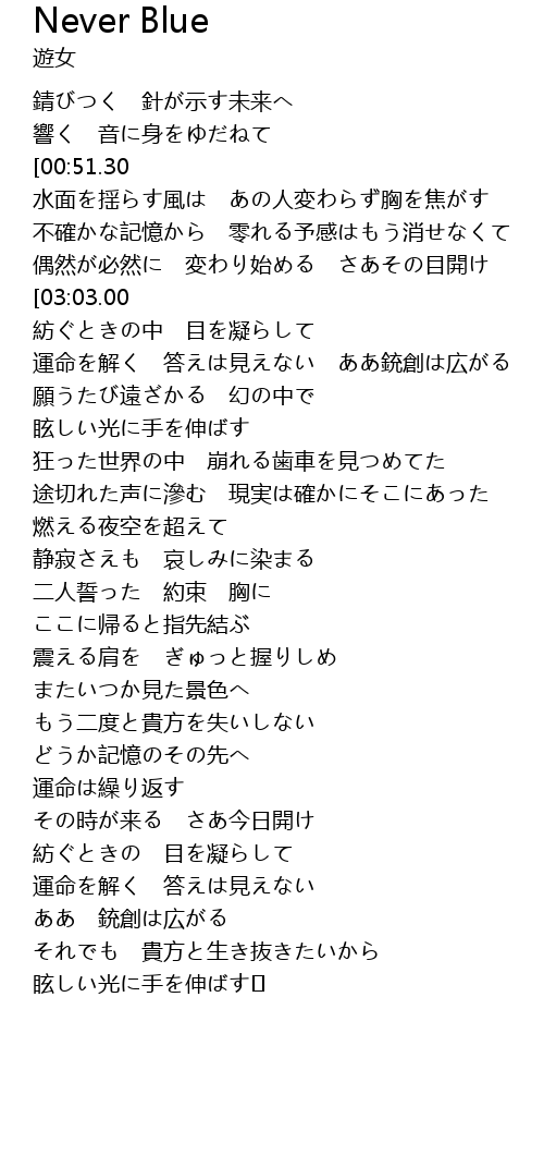 | [00:53.20][03:03.00] | 消えないように 壊れないように |