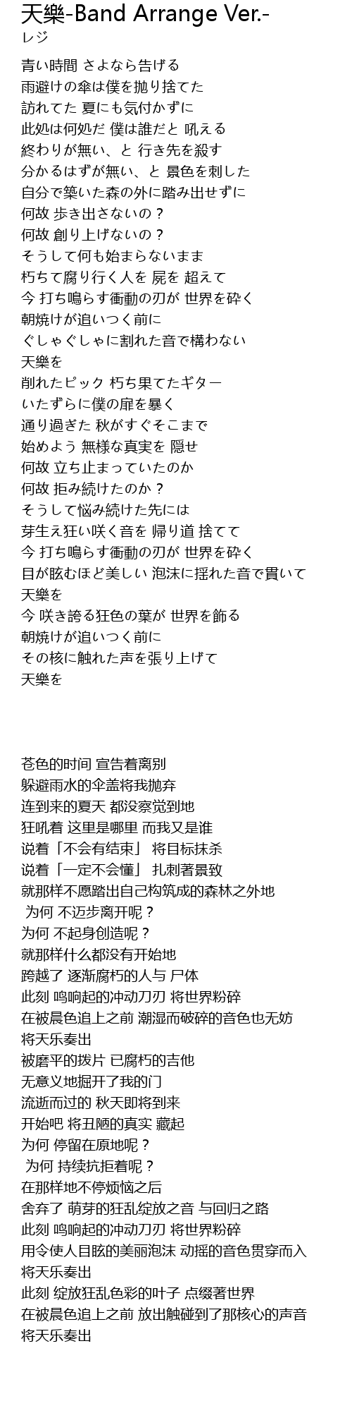 | [03:22.04] | 芽生え狂い咲く音を 帰り道 捨てて |