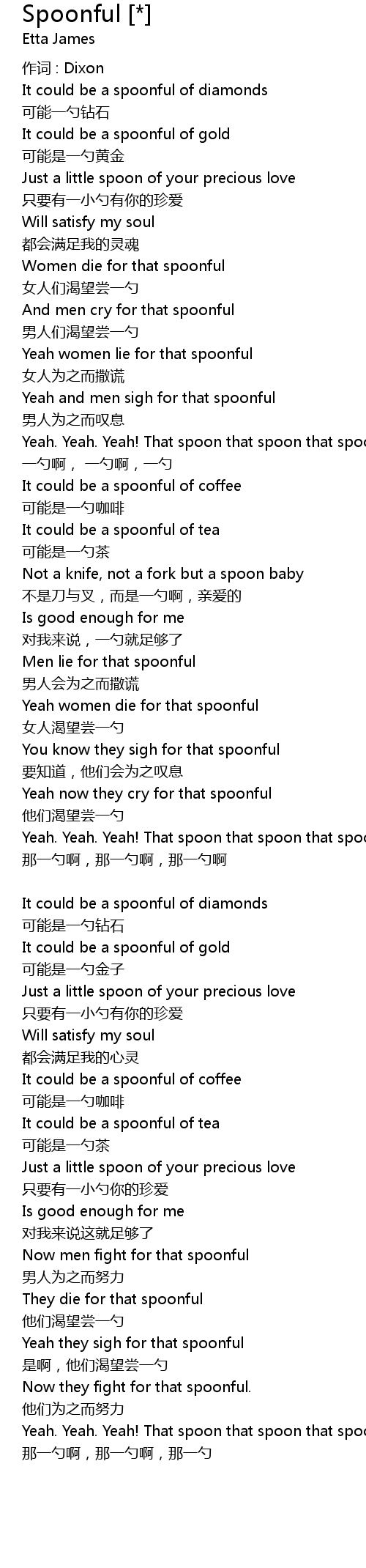 | Yeah. Yeah. Yeah! That spoon that spoon that spoonful | |
