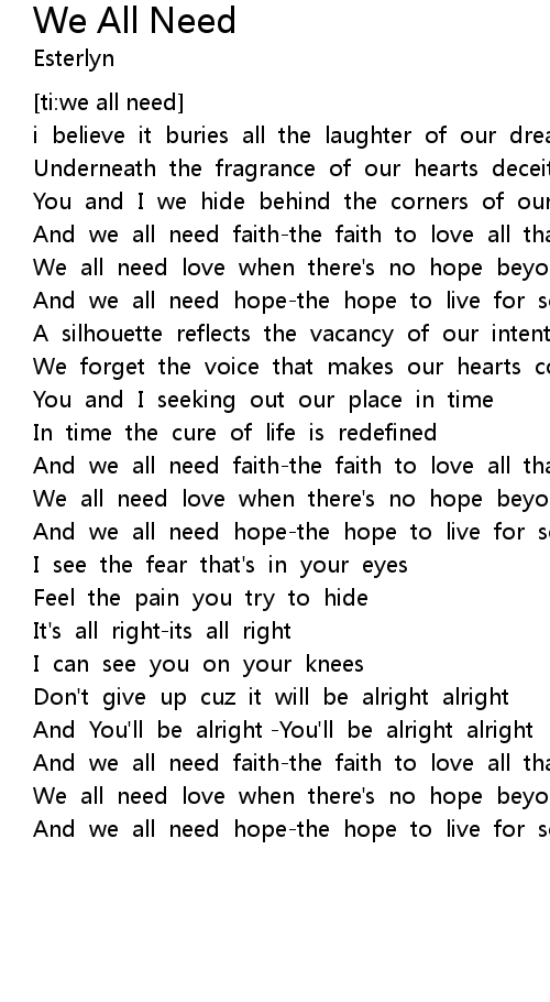 | [01:38.578] | We all need love when there's no hope beyond the door |