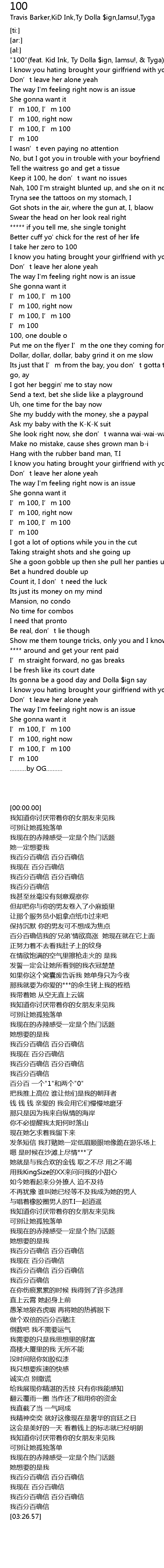 | [00:00.00] | " 100" feat. Kid Ink, Ty Dolla ign, Iamsu!, Tyga |